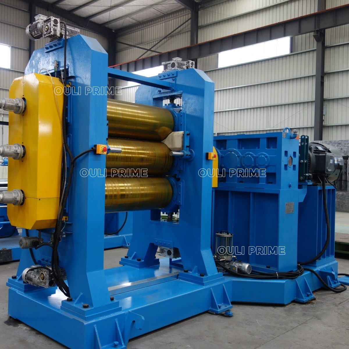 A calandra de borracha de três rolos é utilizada para a calandragem de borracha ou plásticos, fracionamento e revestimento de tecidos, laminação e composição de borracha ou plásticos.